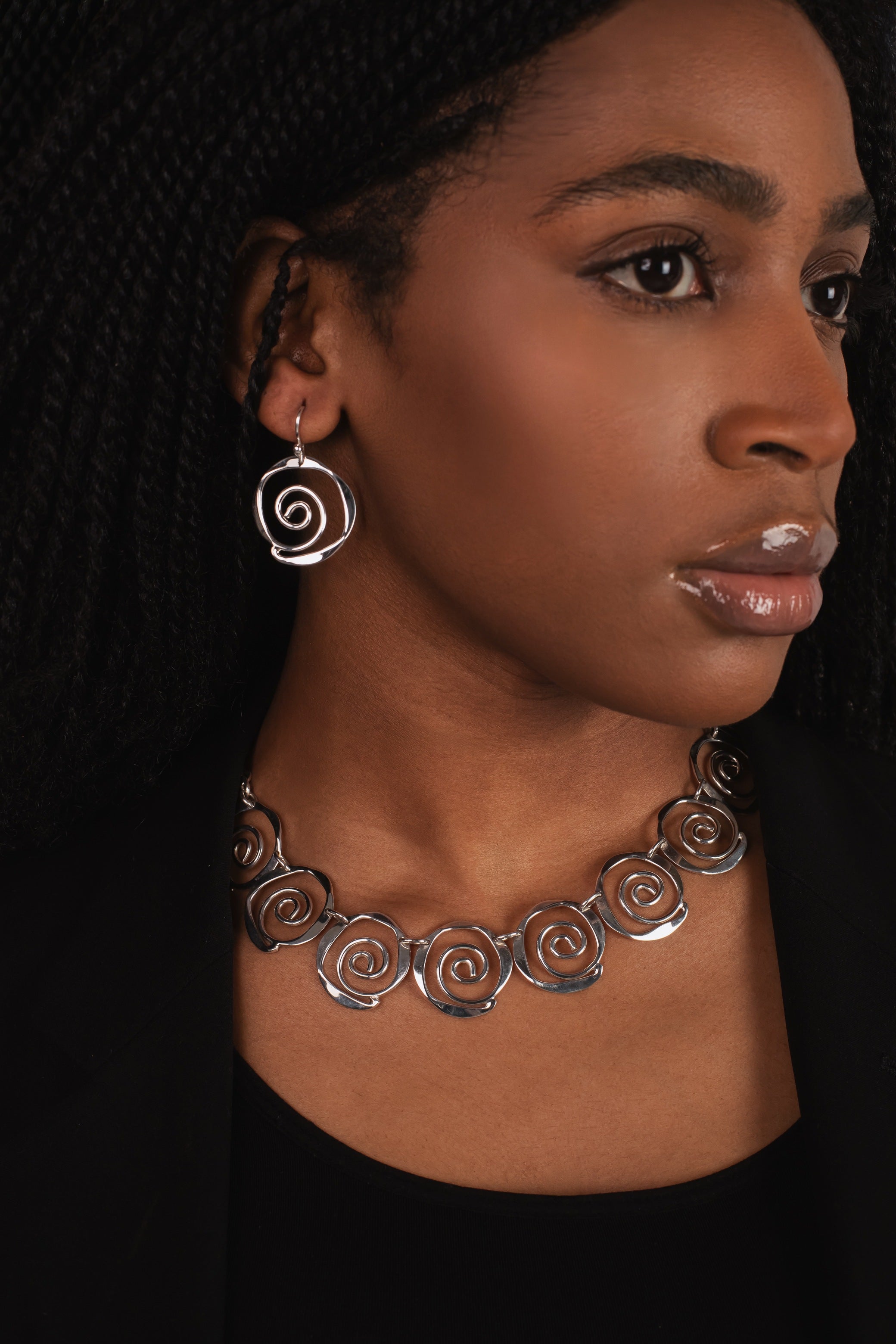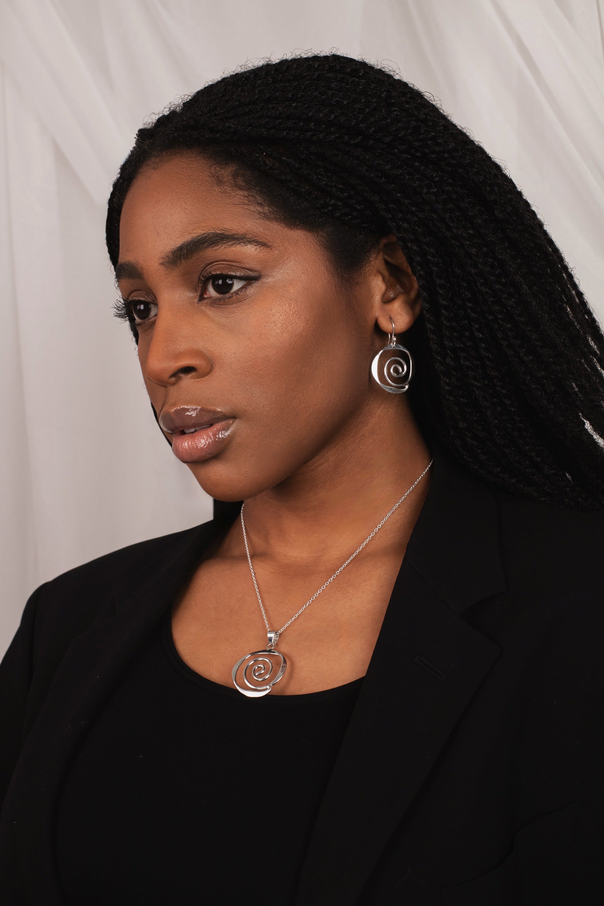 I am so thrilled with these earrings, they are super with all my outfits from dawn to dusk and beyond! So reasonable in price couldn't believe it. So well made. I find it hard not to wear them every day. The detail of the swirly ring is perfect. I am delighted.