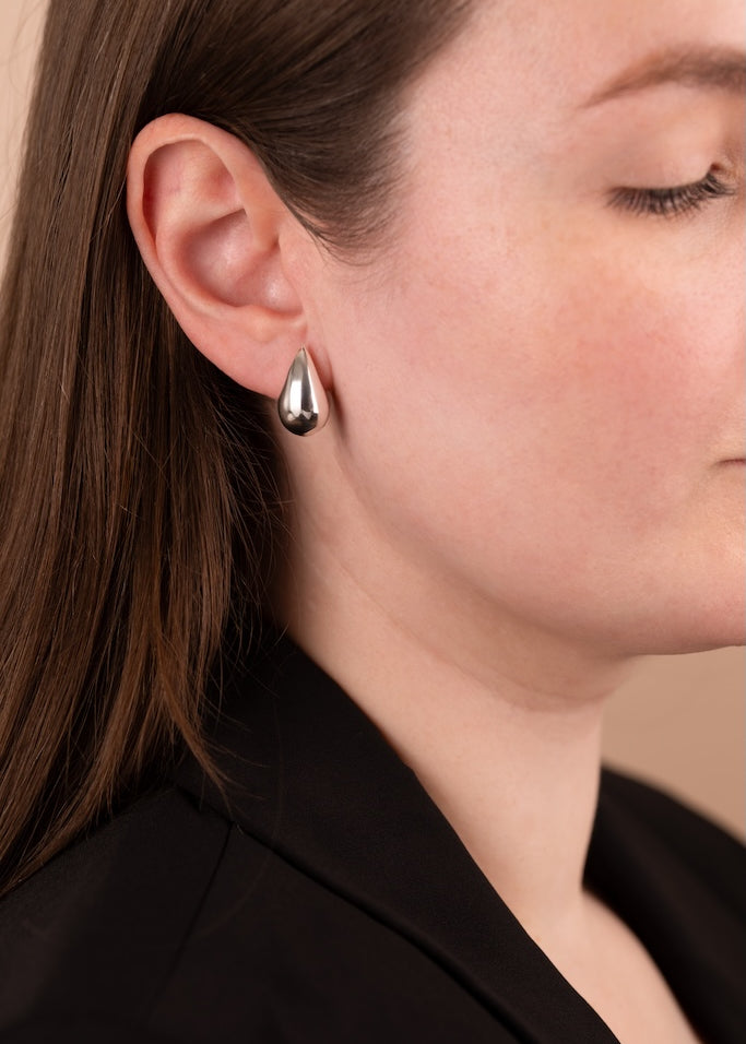 Polished Teardrop Stud Earrings (Medium) in Sterling Silver