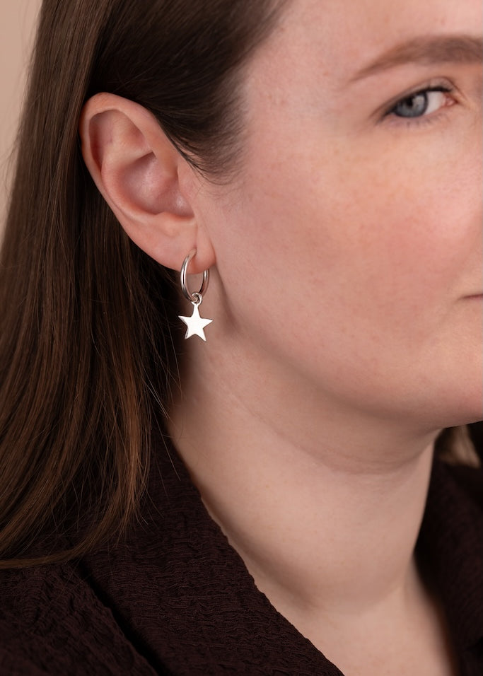 Disc Hammered Circle Dangly Earrings in Sterling Silver