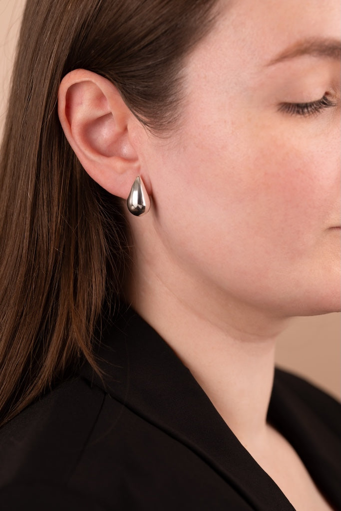 Polished Teardrop Stud Earrings (Medium) in Sterling Silver