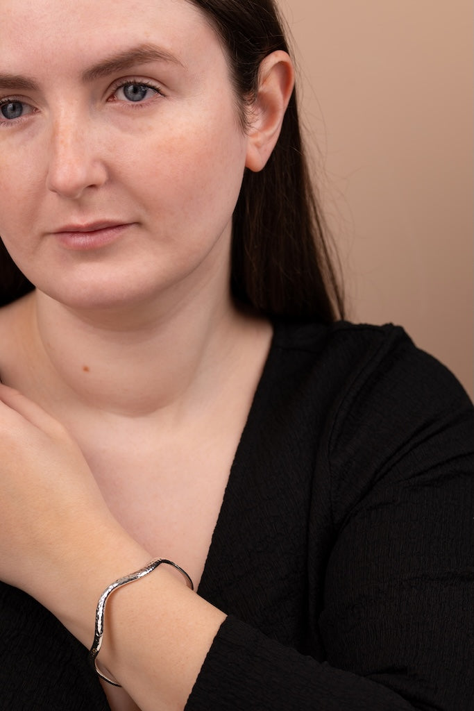 A fabulously fierce wavy pattern in Hammered version. Great by itself or with added bangles for maximum sparkle!